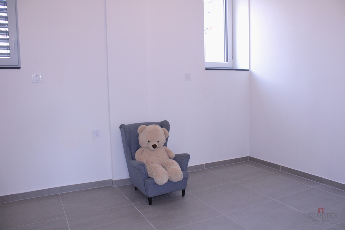 Top 11 ist eine großzügige 101m² große Erdgeschosswohnung mit Diele/Vorraum, Bad-WC, Abstellraum, 3 Schlafzimmern und einem großzügigen 42 m² großen Kochen-Ess-Wohnbereich, von welchem durch eine riesige Glasschiebetür die westlich gelegene Terrasse im Ausmaß von ca. 45m² erreichbar ist.