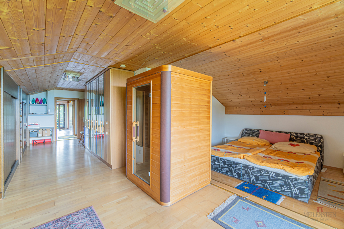 Obergeschoss: •Drei großzügige Schlafzimmer, jedes mit eigenem Balkon – genießen Sie Ihre private Aussichtsoase •Das Masterschlafzimmer mit einer Wärmekabine und Blick über St.Veit an der Glan bis hin zur Burg Hochosterwitz •Großes, Badezimmer mit Eckbadewanne, Dusche, Doppelwaschbecken und Bidet Besonderheiten