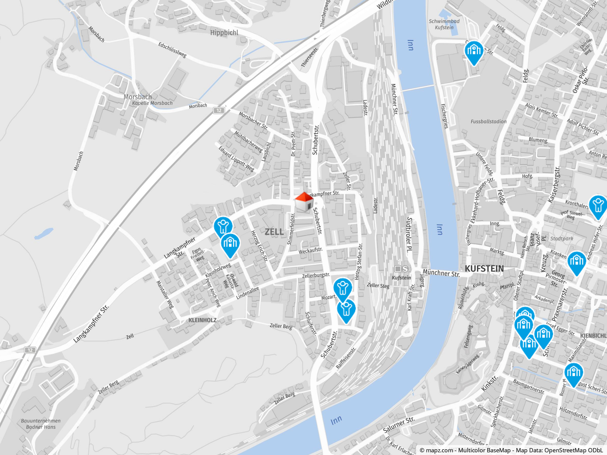 Die Liegenschaften an der Langkampfenstraße 9 und 9a befinden sich in einem ruhigen Wohngebiet in Kufstein, Tirol. Die Lage bietet eine hervorragende Verkehrsanbindung mit der nahegelegenen Inntalautobahn (A12) und dem Bahnhof Kufstein.