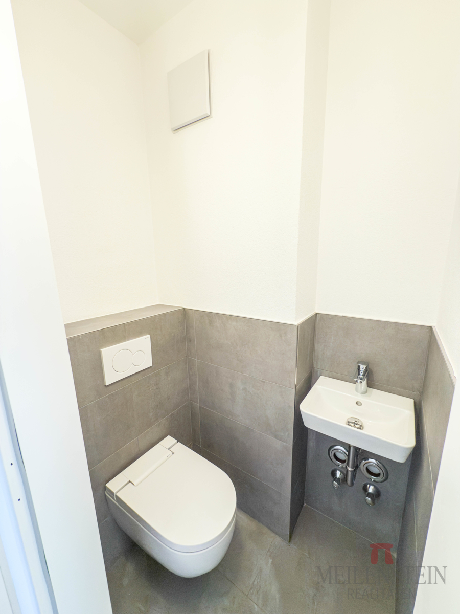 Zwei Schlafzimmer, ein weitläufiges Wohnzimmer sowie ein modernes Badezimmer mit bodengleicher Dusche, Handtuchtrockner und Waschmaschinenanschluss bieten hohen Komfort. Ein separates Geberit AquaClean WC sorgt für zusätzlichen Komfort. Der Abstellraum bietet ausreichend Stauraum für persönliche Dinge. Der große Balkon, der nach Süden ausgerichtet ist, lädt zum Entspannen ein und lässt die Sonne den ganzen Tag hindurch ins Zuhause.