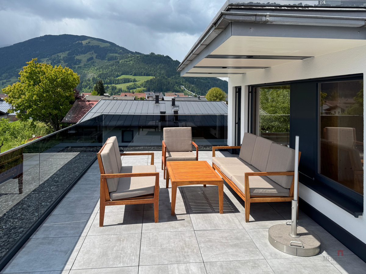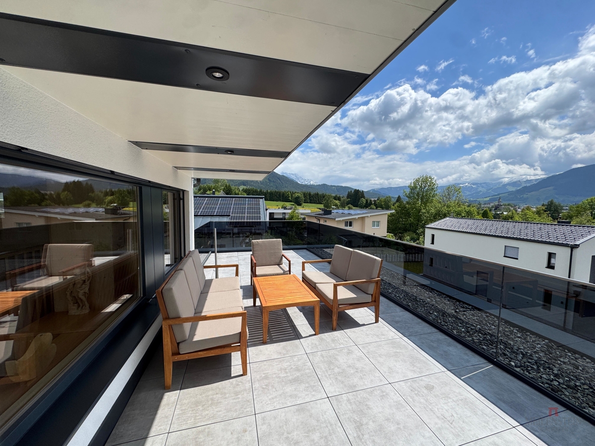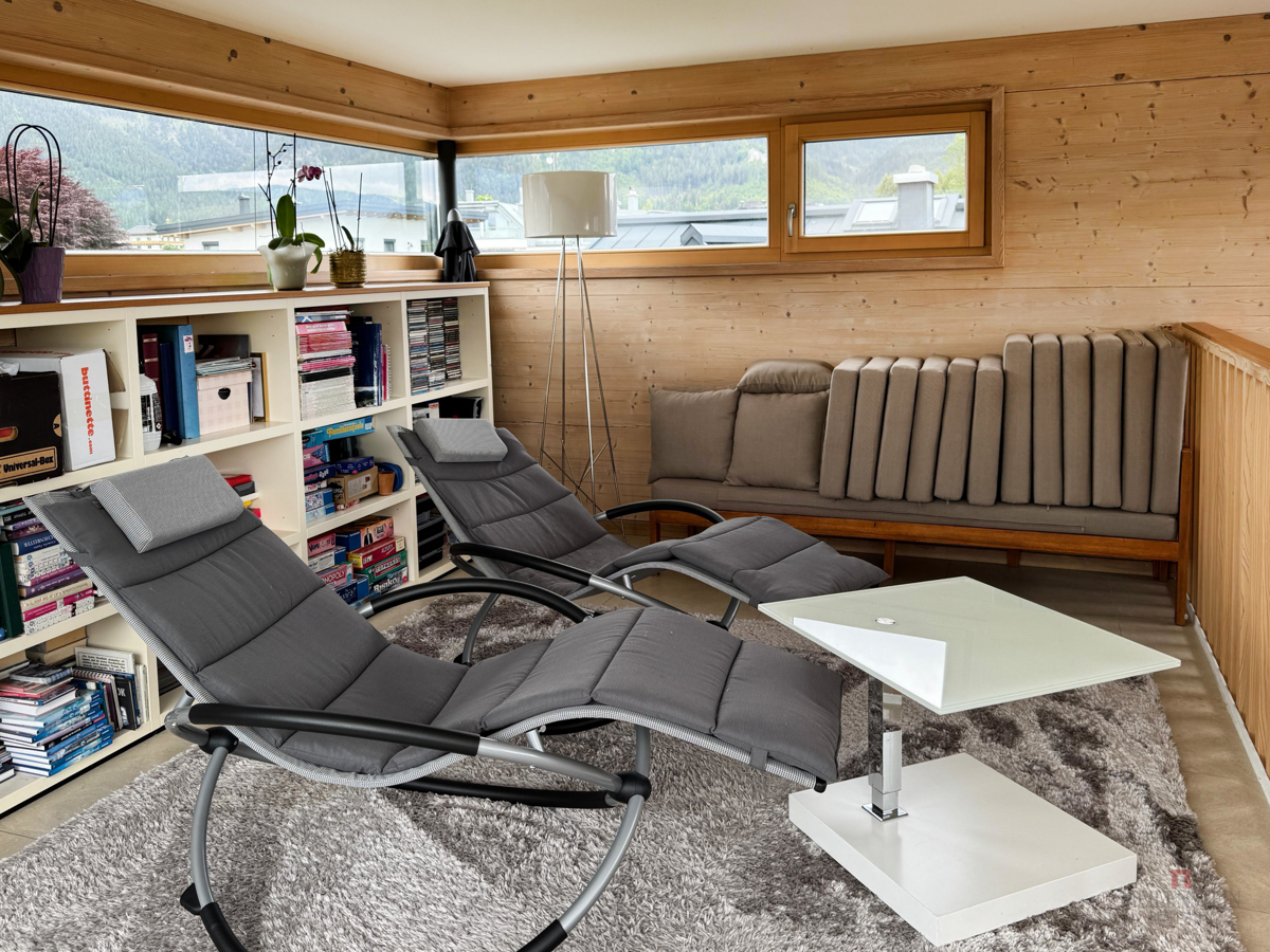 Dachgeschoss: Ein 18m2-Wohlfühlraum bietet Platz zur vielfältigen Nutzung. Die angrenzende Dachterrasse besticht durch einen atemberaubenden Ausblick auf die Bergwelt und die Weite des Saalfeldner Beckens.