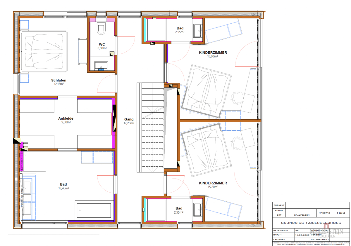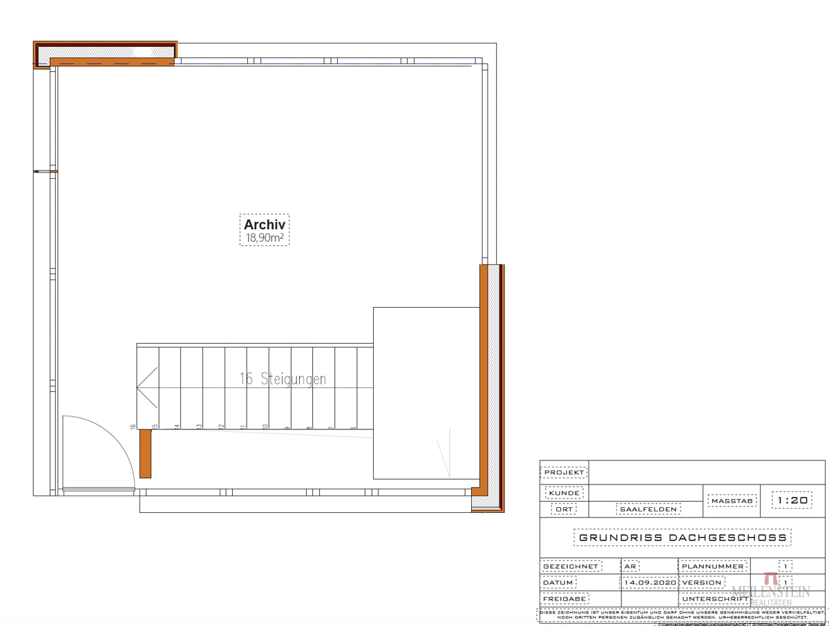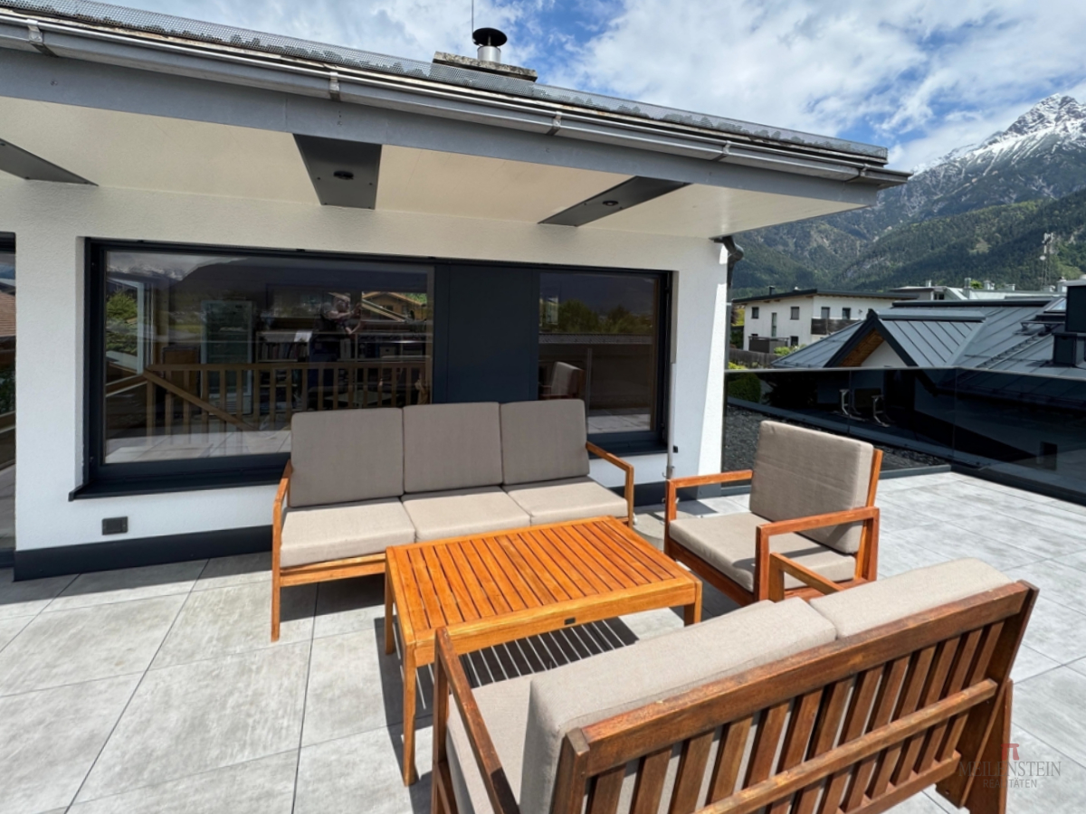Dachgeschoss: Ein 18m2-Wohlfühlraum bietet Platz zur vielfältigen Nutzung. Die angrenzende Dachterrasse besticht durch einen atemberaubenden Ausblick auf die Bergwelt und die Weite des Saalfeldner Beckens.