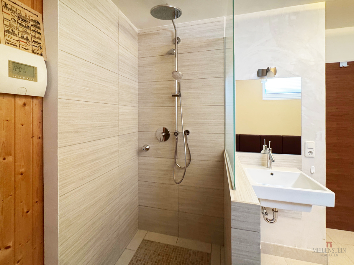 1.Obergeschoss: hier liegt der Schlafbereich : 2 Schlafzimmern mit angrenzenden Duschbädern, sowie 1 Schlafzimmer mit Ankleideraum, großem Badezimmer, inkl. Dusche und Wanne, garantieren erholsame Stunden. Alle Räume sind mit hochwertigen Einbaumöbeln ausgestattet. Auch auf dieser Ebene gibt es eine Terrasse von 21m2.