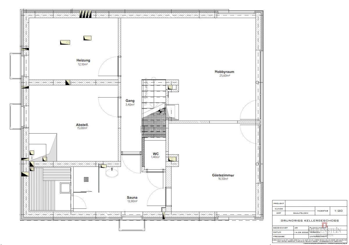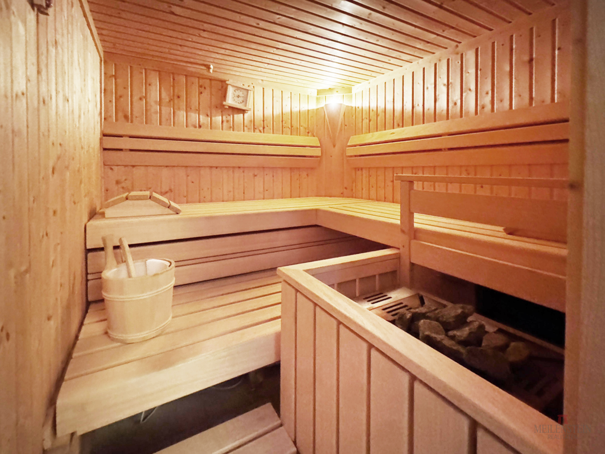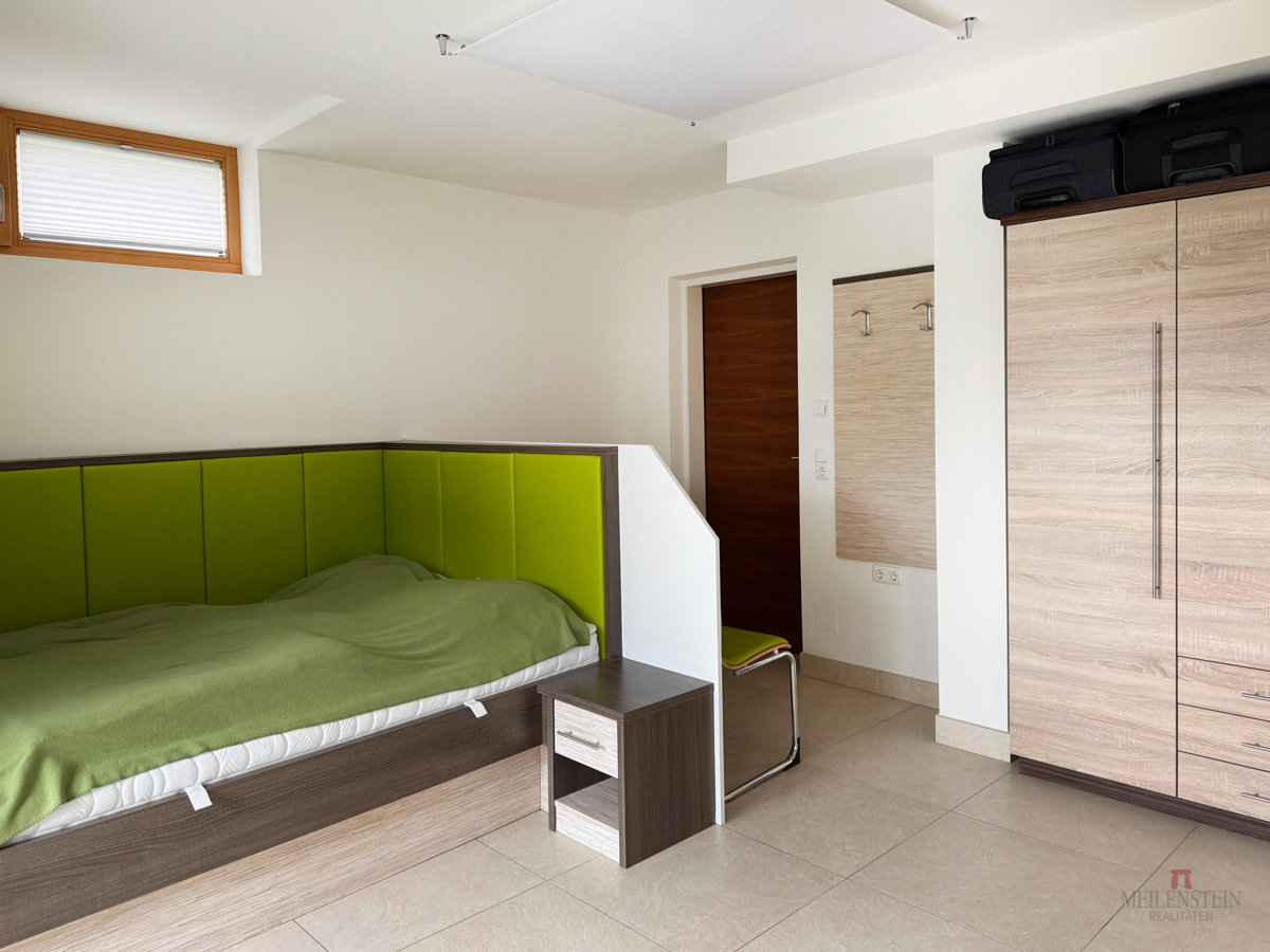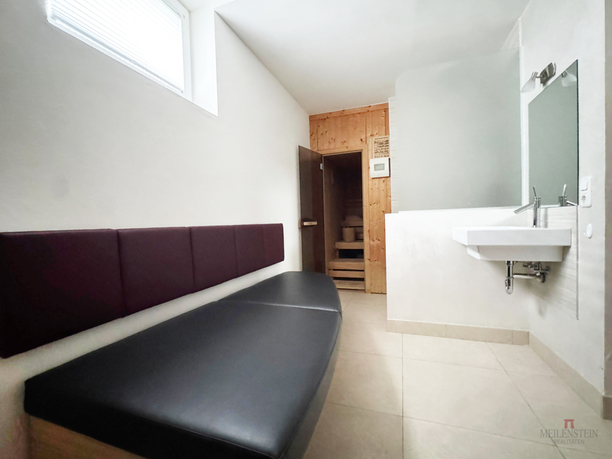 Kellergeschoss: Es erwarten Sie ein großzügiger Hobbyraum (25,60 m²), ein gemütliches Gästezimmer (16,50 m²) mit Ausgang auf die 35m2- Terrasse, eine Sauna (13,90 m²) mit eigenem Duschbereich, ein WC, sowie zwei große Abstellräume (15,00 m² und 12,10 m²). Hier könnte zügig eine Einliegerwohnung entstehen.
