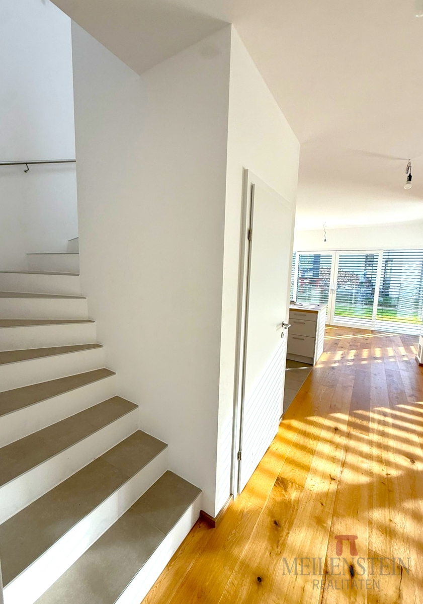 Im Inneren erwartet Sie ein Wohnambiente, das durch ausgesuchte Materialien, helle Räume und eine klar strukturierte Architektur geprägt ist. Die Immobilie bietet höchste Wohnqualität – perfekt geeignet für Familien mit Anspruch und Geschmack.